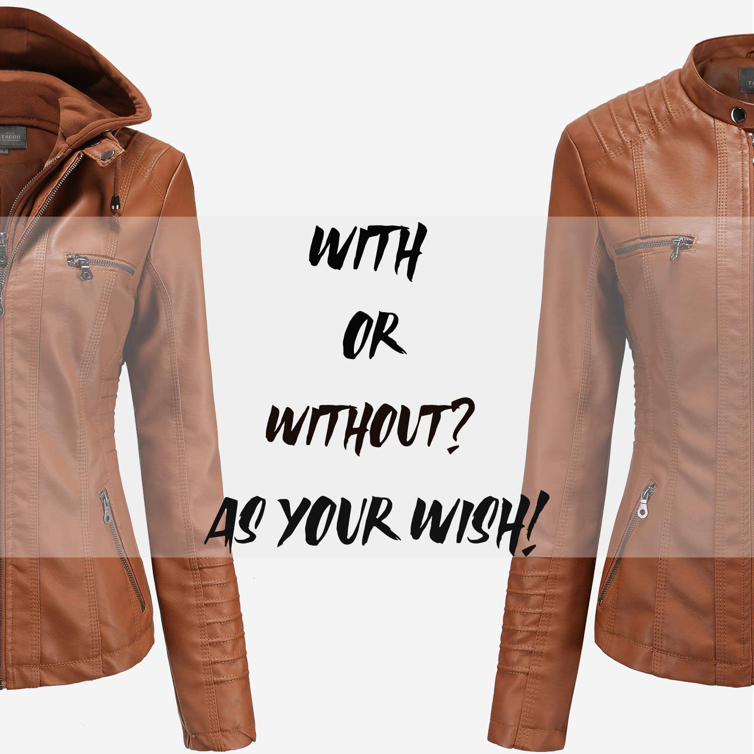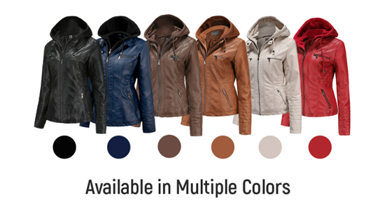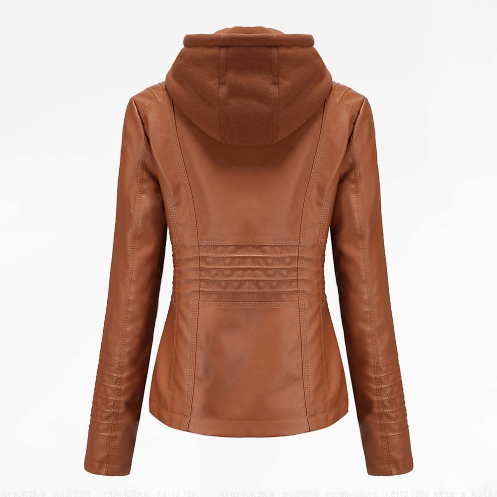 Tagoo Faux Leather Jacket Women Motorcycle Coat for Biker with Removable Hood Plus Size