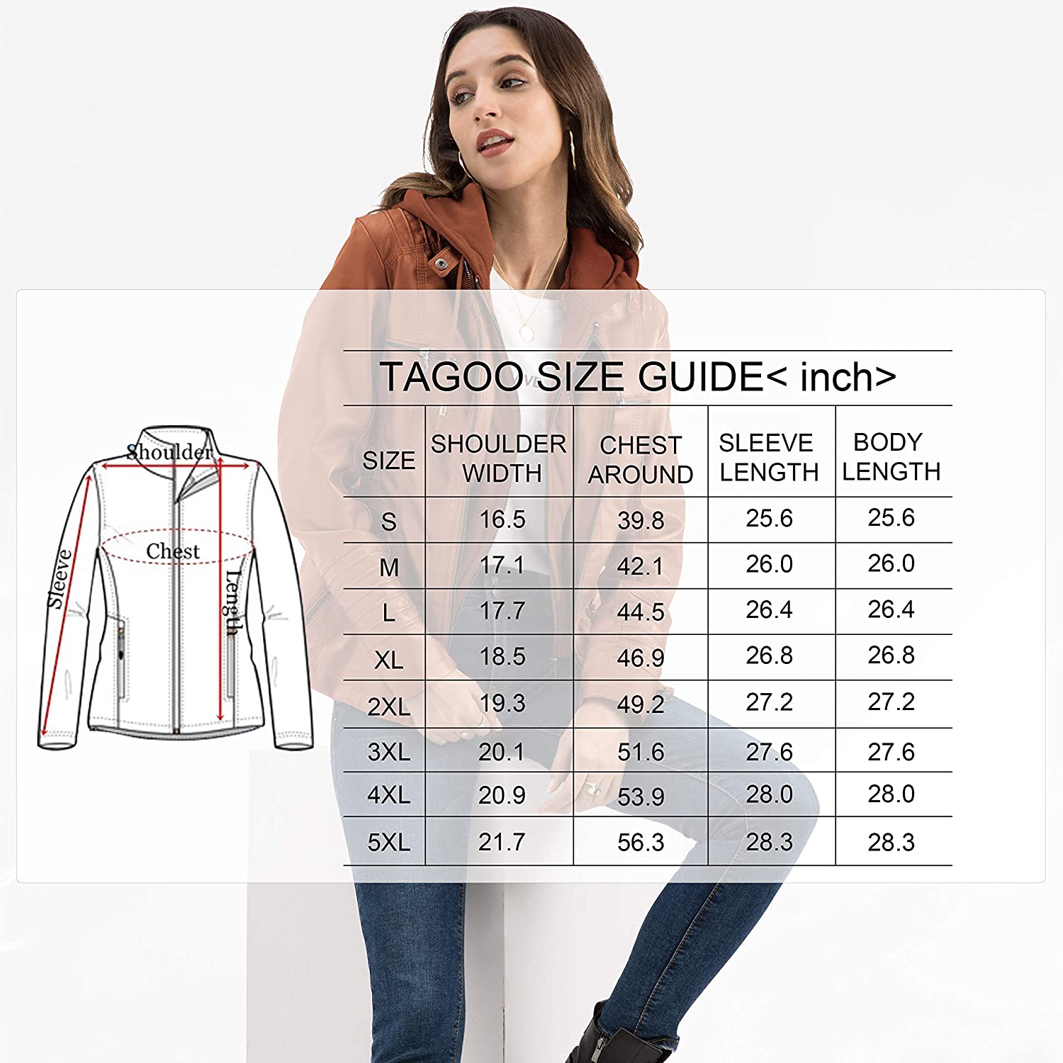 • Quality Materials: Tagoo leather jackets for women made of soft faux leather, windproof, keep you warm in winter, fall and spring.