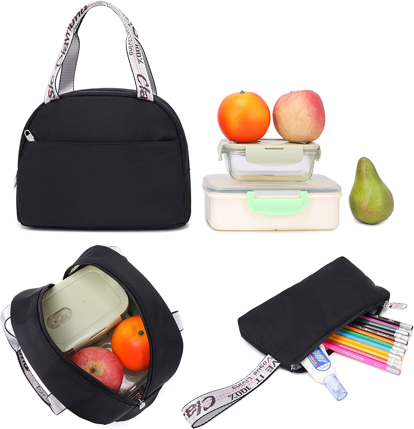 LAPTOP BACKPACK with LUNCH BAG and PURSE: Girls Backpack: 12 x 5.5 x 16.5 Inches. Lunch Bag: 10 x 5.5 x 7.5 Inches. Pencil case or Purse: 8.5 x 0.5 x 4.5 Inches. The backpack set could be compatible for upmost 15.6 Inch Laptops/Macbooks/computers, it has enough space and pockets for charger, binders, books, clothes and other various necessities. The lunch bag is made of high-quality and environmentally-friendly thick material, which has good heat preservation and fresh-keeping functions.