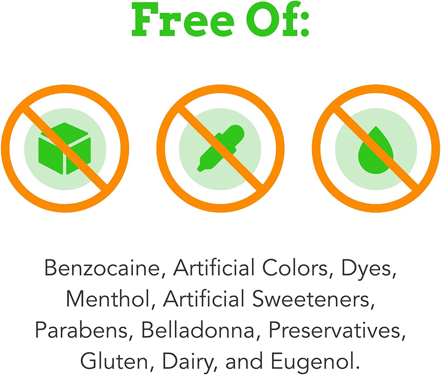 DRUG-FREE: Free from benzocaine, belladonna, eugenol, sugar, menthol, sodium lauryl sulfate (SLS), sulfate, dairy, and artificial colors and dyes