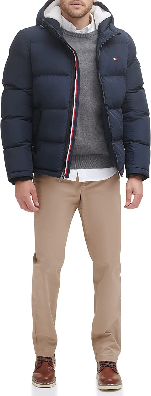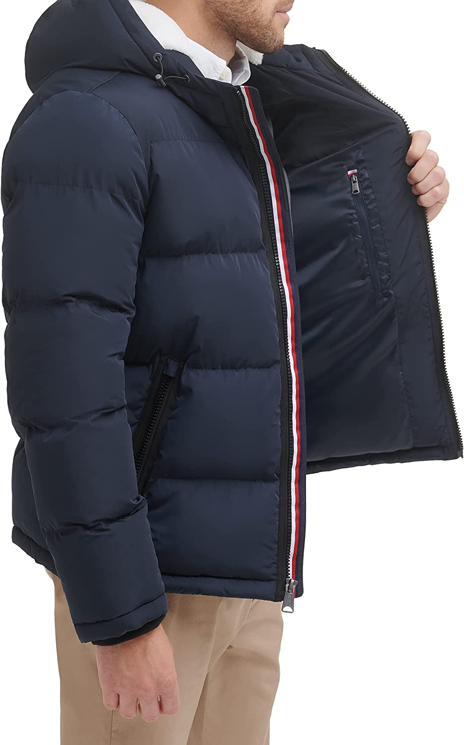 - STYLISH FEATURES: The jacket demonstrates the signature look of Tommy Hilfiger with an embroidered flag on the left chest; The cuffs also exuberate authenticity with a Tommy Flag placed on the inside of the cuff