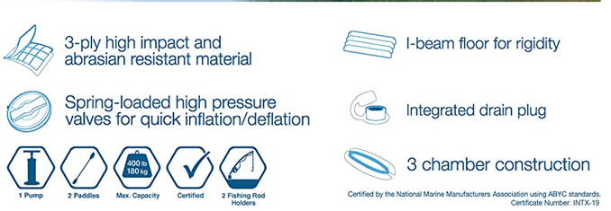 | Included Components | Carry Bag, Repair Patch Kit, Aluminum Oars, High Output Air Pump, Inflatable Kayak |