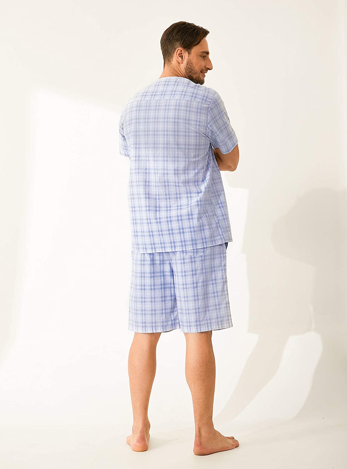 Premium Cotton Fabric Pajamas: 26S combed cotton top and 60S cotton bottom in woven texture are smooth soft, lightweight, moisture-wicking and comfortable for wearing