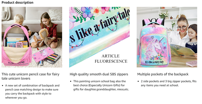 Material: This girl unicorn backpack is well made of high quality and durable Oxford with fairy tale unicorn printing, it would not fade. The 3 IN 1 kindergarten backpack set include girls Backpack + Insulated lunch tote Bag + Pencil pouch also as purse, perfect for girls to use at school days.