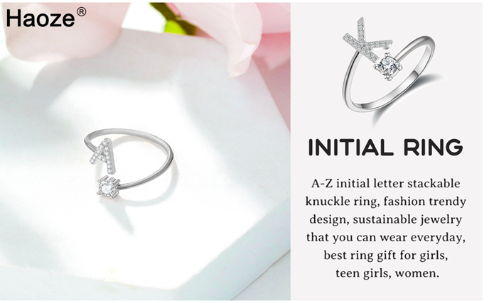 - CUTE INITIAL RING: This initial letter ring was designed with initials A-Z. 26 letters cover everyone's name, each letter has a special meaning for you, your lover's initials, daughter's initials, son's initials, perfect rings for teen girls, teens, daughter, mom, mother, bride, bridesmaid or best friends gifts.