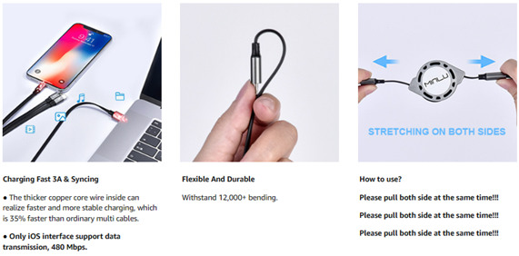 ● Packing: 2 × 3 in 1 Retractbale USB Cables