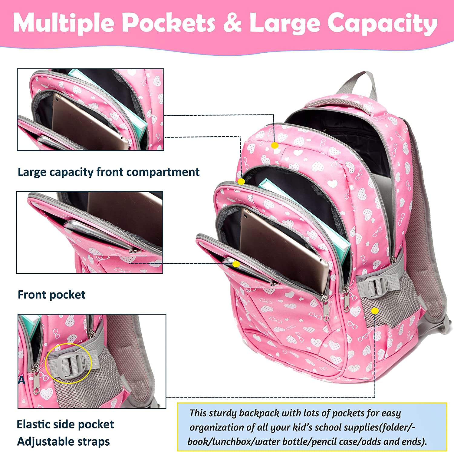 ?【BREATHABLE & ADJUSTABLE SHOULDER 】-- This kids backpack with breathable and adjustable shoulder straps relieve the stress of shoulder. S-shape shoulder straps, comfortable to carry. A strap and a handle on the top. High quality zippers. Sturdy constructions.