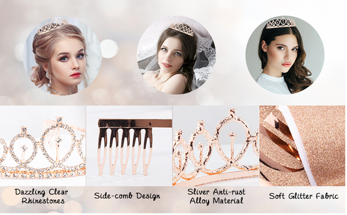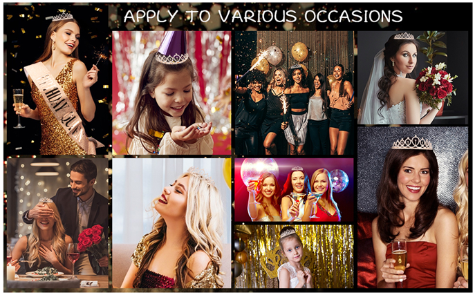 • Rhinestone Tiara. It is a dazzling and beautiful tiara for women.With the shiny, attractive, beautiful rhinestones paved on the crown, your feeling like a queen or princess when wearing it. Perfect for any party use, halloween costumes, makes the most stunning at any occasions decorated for the special birthday women girl.