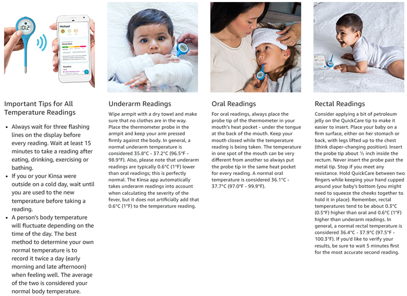 Kinsa QuickCare Smart Thermometer for Fever - Digital Medical Baby, Kid and Adult Termometro - Accurate, Fast, FDA Cleared Thermometer for Oral, Armpit or Rectal Temperature Reading