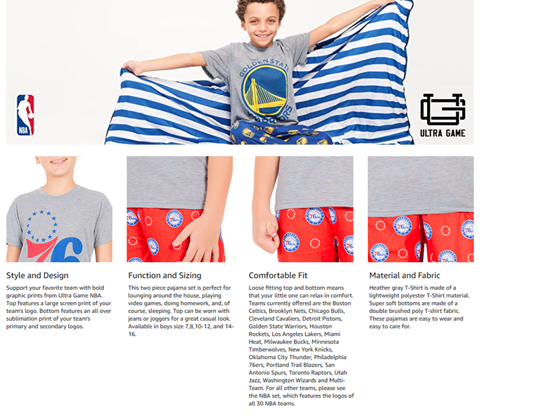 - STYLE AND DESIGN: Top features a large screen print of your team's logo, as well as an Ultra Game NBA jock tag. Bottom features an all over sublimation print of your team's primary and secondary logos