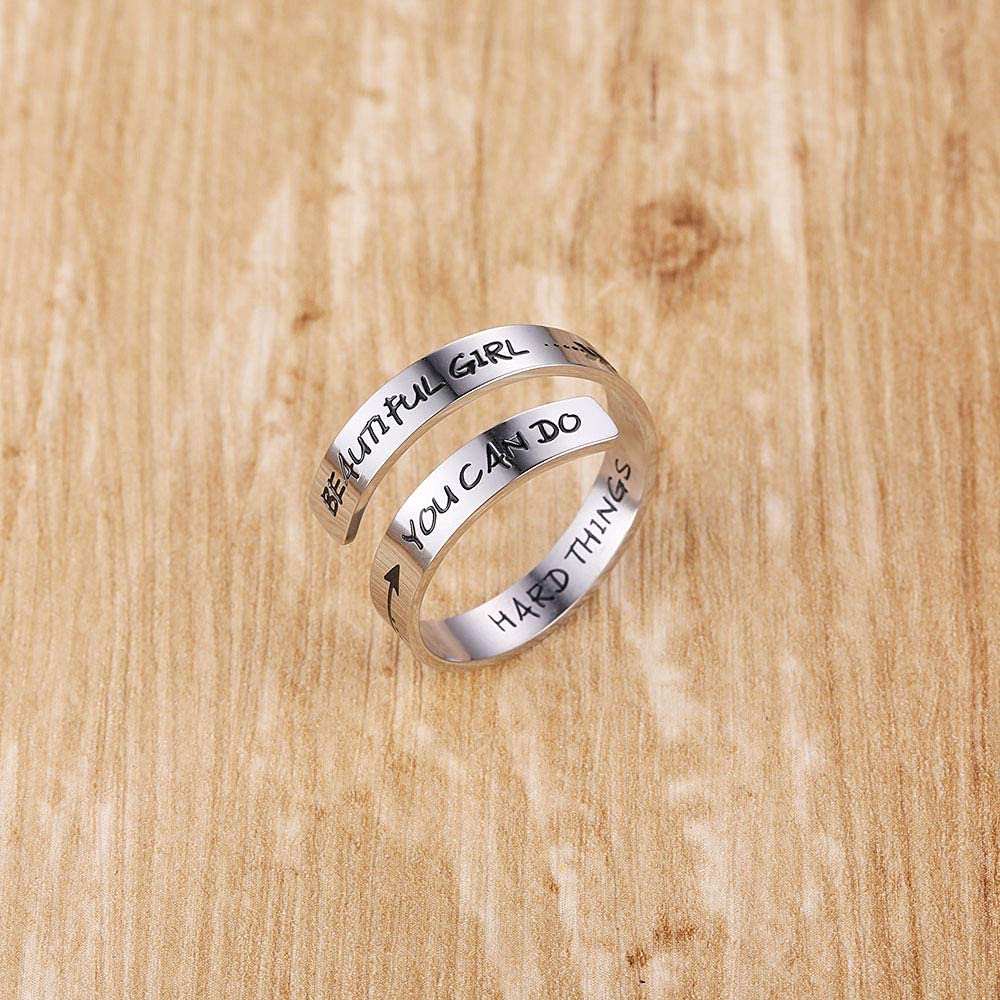 - ?Handmade Inspirational girls ring, Engraving beautiful girl you can do hard things. Simple but lovely words of inspiration.for everyday wear,and at the same time reminds the wearer that life is beautiful every day of life.