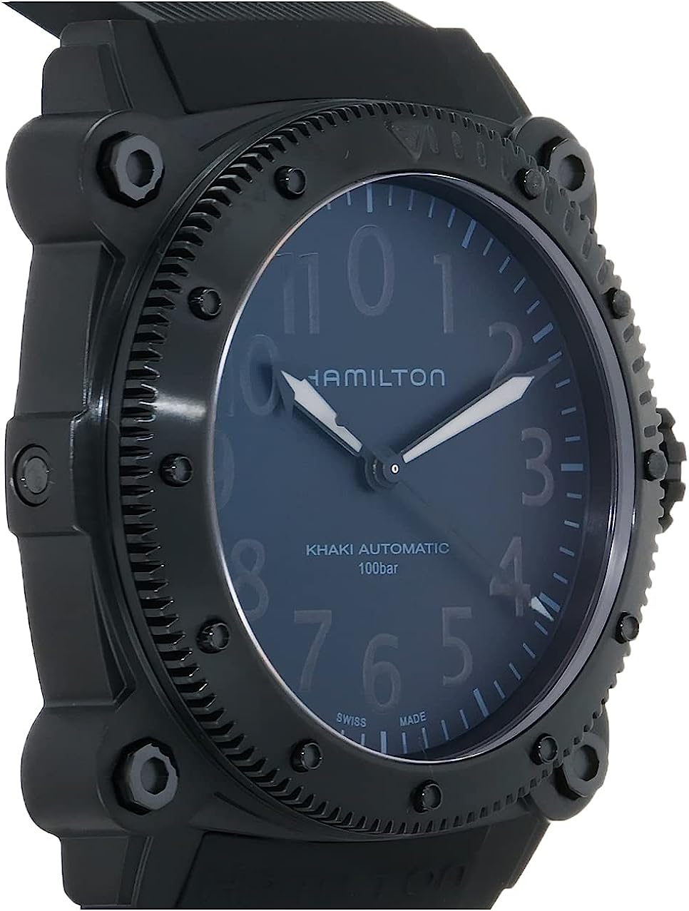 Hamilton Watch Khaki Navy BeLOWZERO Swiss Automatic Watch Titanium 46mm Case, Black Dial, Black Rubber Strap (Model: H78505330)