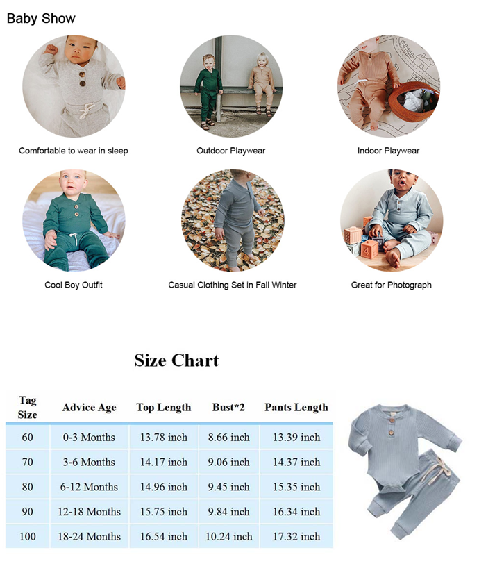 ♥ [Package includes]: 1 x long sleeve romper top +1 x long pants. Best gift for your baby, who will enjoy the super comfort wearing it.