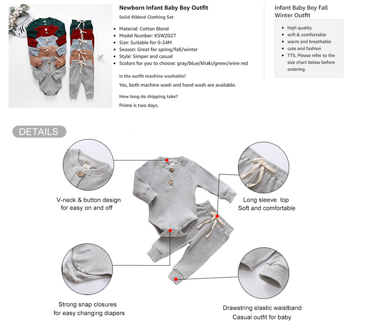 ♥ [Cute Style]: Pull On closure. Two-Piece unisex baby pjs set. Solid color v-neck and button design, ribbed long sleeve romper top matching drawstring long pants. Simple yet stylish. Perfect for spring/fall/winter.