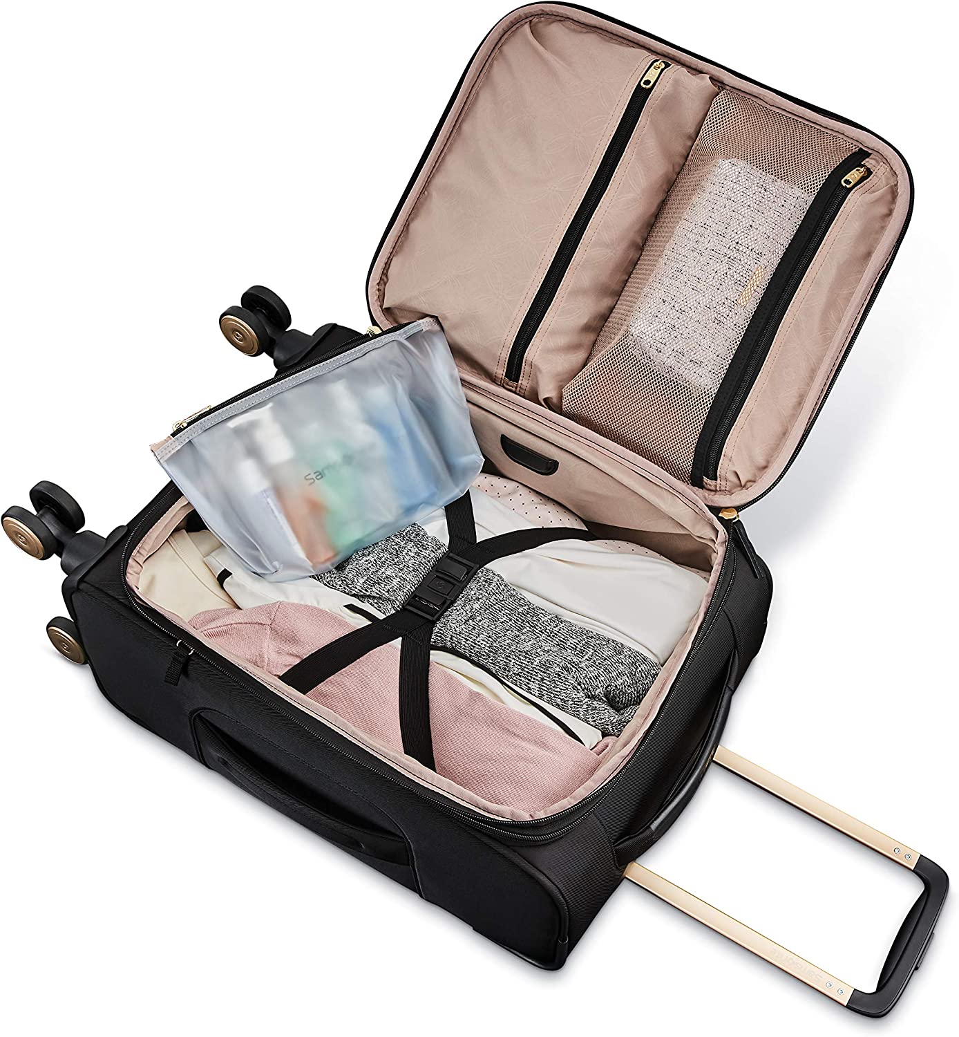 - SmartSleeve: fits over most upright luggage handles for easy mobility.
