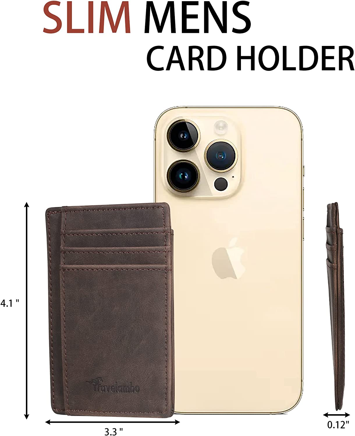 - SUPER MINIMALIST & SLIM: only 0.12" thick, sizing 3.3" X 4.1" X 0.12" extremely convenient to be carried around in your front or back pocket. 100% GENUINE LEATHER: soft and durable.