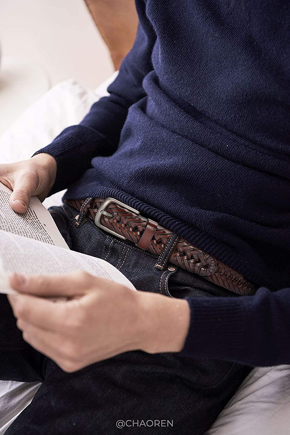 CHAOREN Braided Belt for Men 2 Pack - Mens Belt Leather 1 1/8" in Gift Set Box - Fits Almost Any Occasion and Look