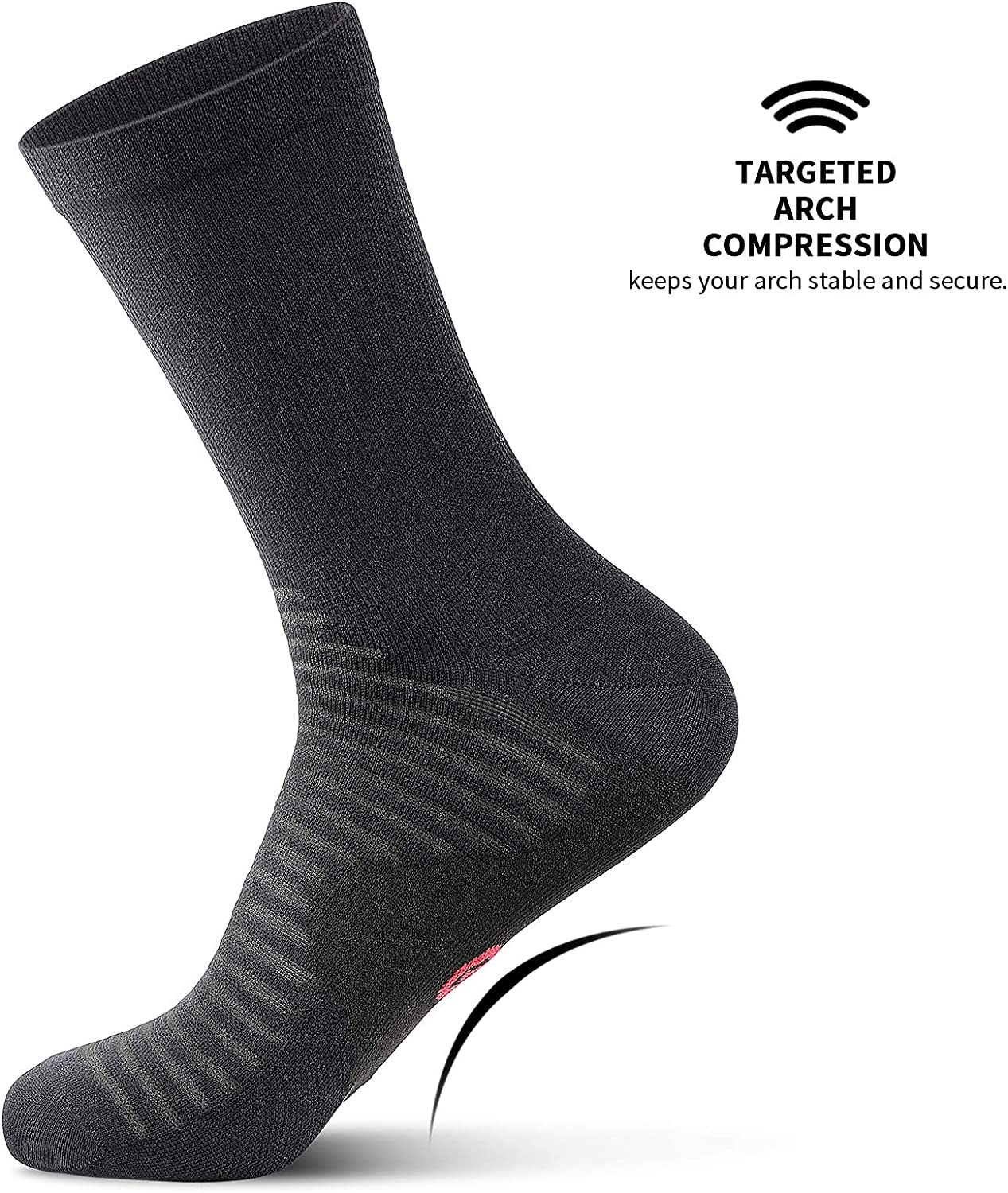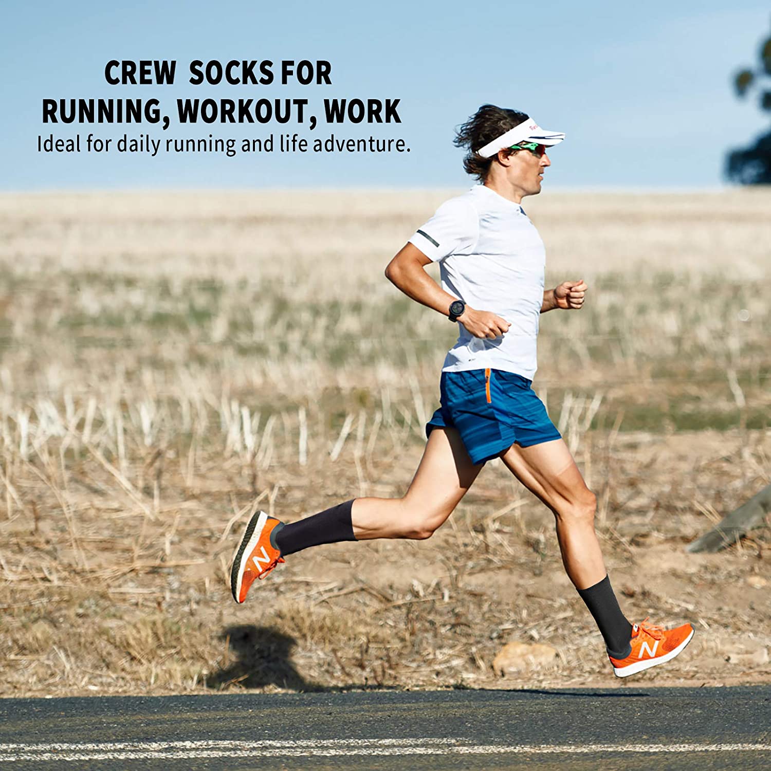 [COMFORT & DURABILITY] With additional length to keep your ankle stable. All this in a sock, just high enough for a feeling of protection, performance, comfort. Durable Reinforced Heel and Toe make your crew socks last longer. Great gift choice for joggers, athletes, workout fanatics, office workers, traveller, and all kinds of people