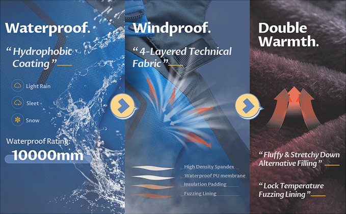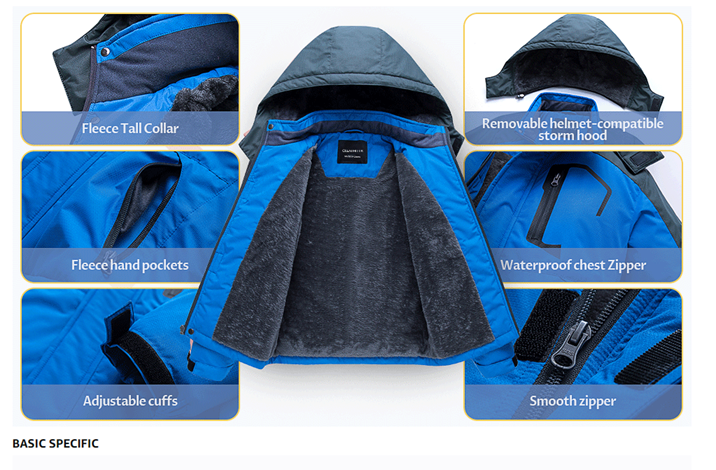 ❄ Warm & Lock temperature--Winter ski jacket is made of machine washable high-density, wear-resistant and waterproof teflon coated outer fabric, matched with a warm liner soft fleece.
