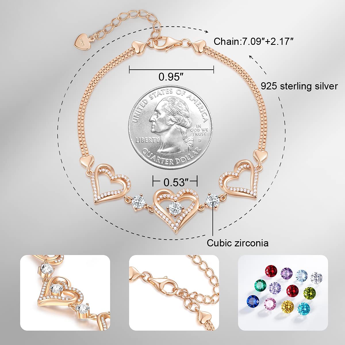 - ✦ 925 STERLING SILVER BRACELET ✦ The heart link bracelet is made of 925 sterling silver with high-cost rose gold plating. It is suitable for sensitive skins and is not easy to turn your wrist green. The safe materials are hypoallergenic and have oxidation resistance.