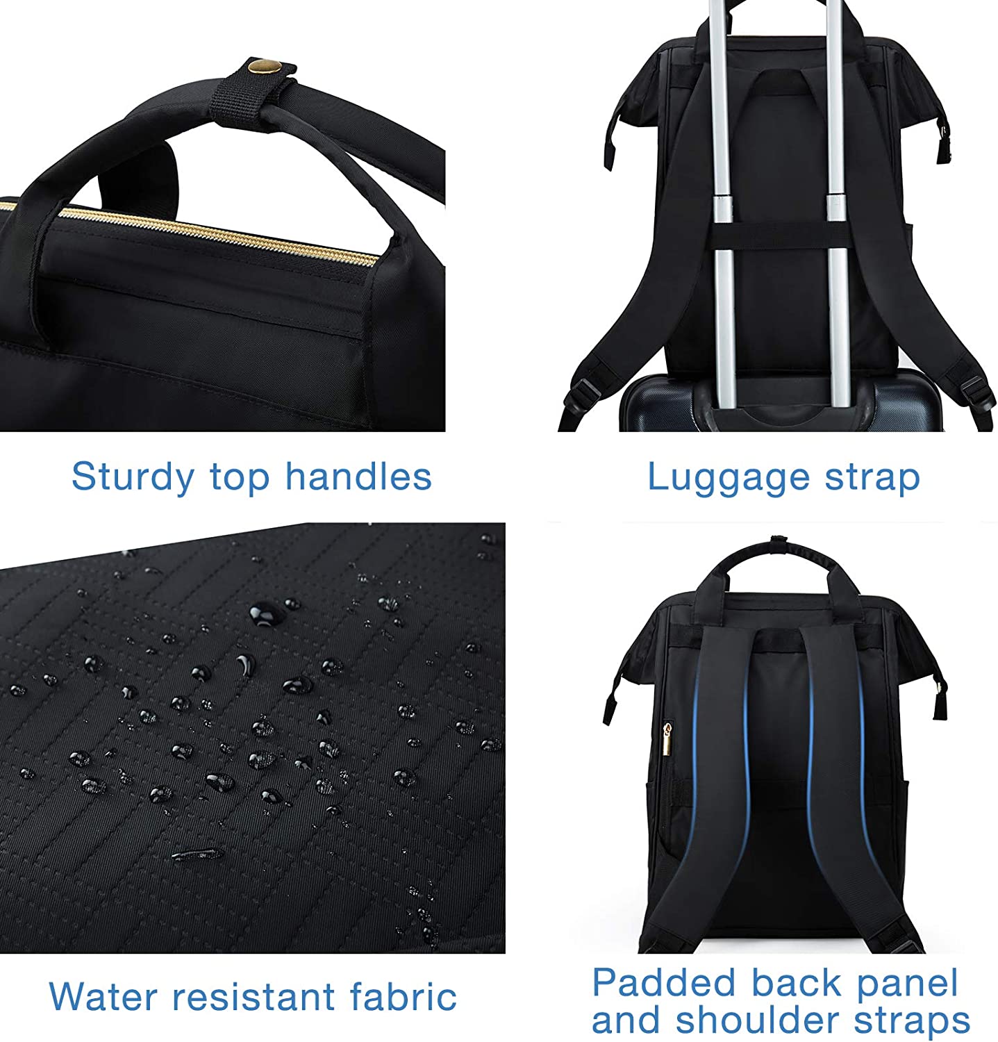 • Comfortable Backpack - "S" curve padded shoulder straps and padded back panel relieve stress of shoulder. Durable top handles and back luggage strap for easy transport. Doctor bag-style wide opening for better access.