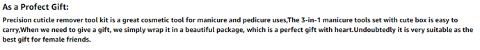 • 【Good Value Cuticle Tool】This is a complete professional cuticle trimmer set for women includes cuticle nippers, cuticle pusher & cuticle cutter,this multi-purpose cuticle tools are great for profession nail art, nail art learner, salon, home and travel DIY nail art.