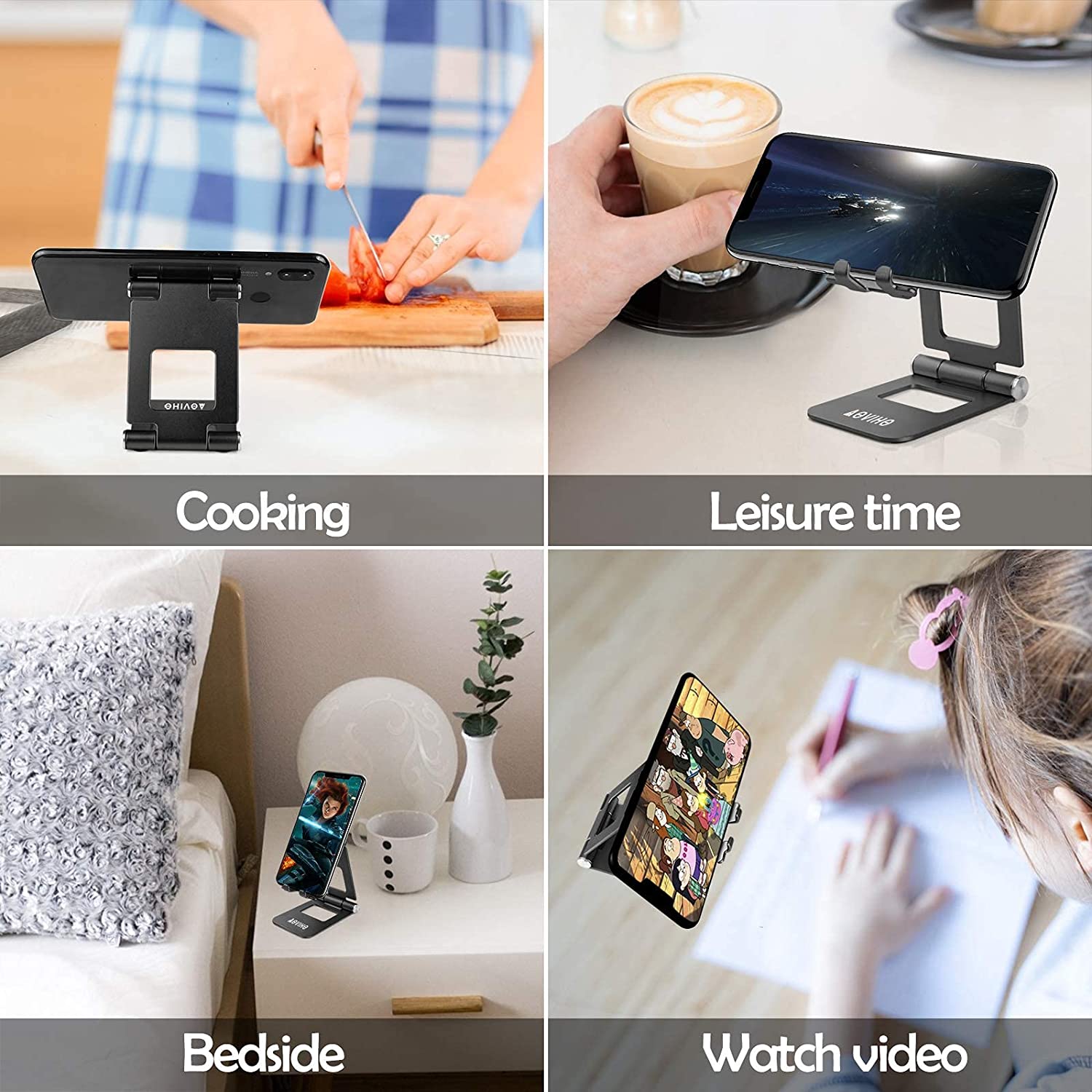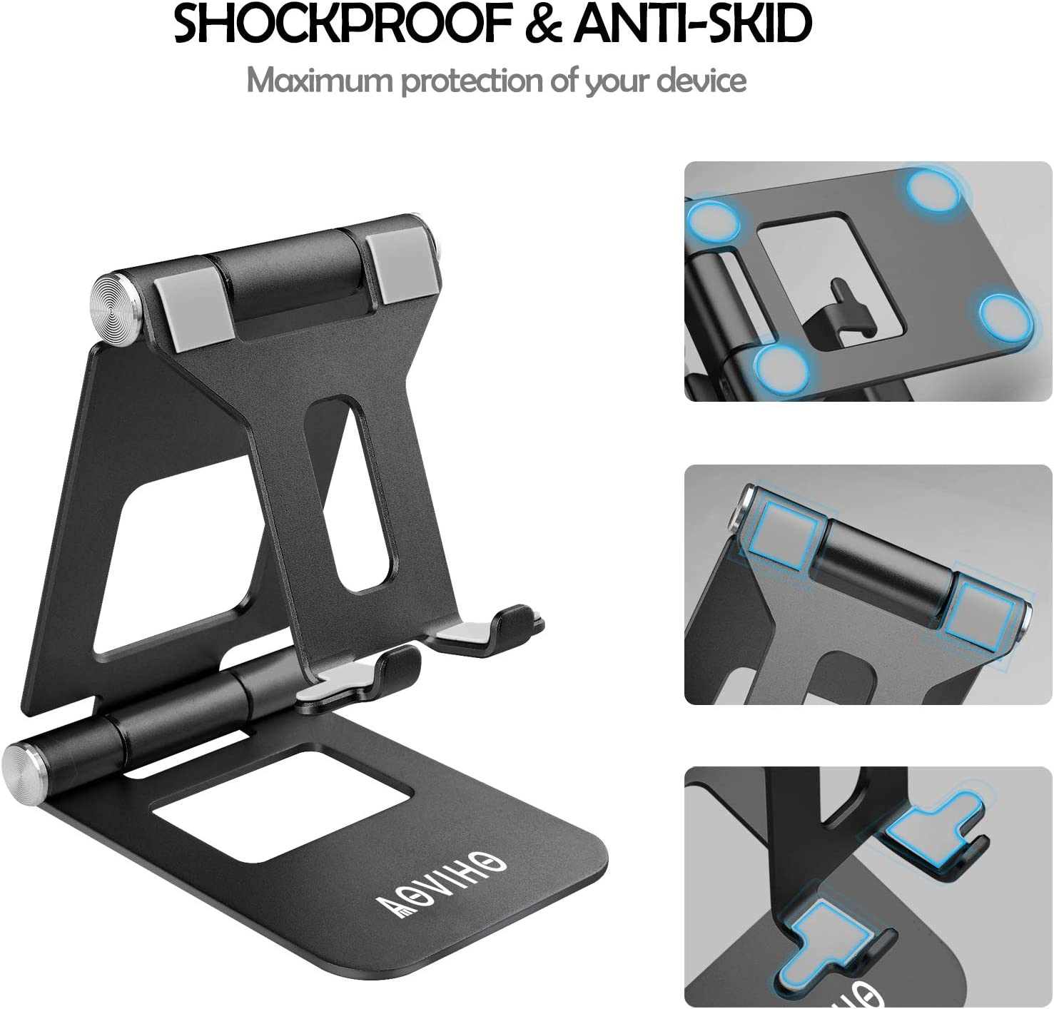 Aoviho Adjustable Cell Phone Stand Holder Fully Portable Phone Holder - Small Aluminum Desktop Stand for iPhone 12 Pro Mini 11 X XR XS Max 8 7 6 Plus (Black)