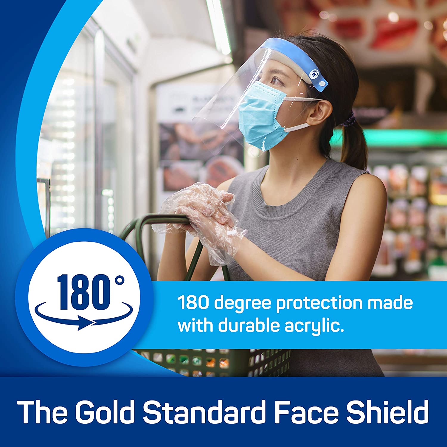 Reusable Face Shield 10-Pack, Lightweight, durable, and reusable safety face shields with a comfortable foam headband provide 180 degree protection. These are clear face shields for women and men.