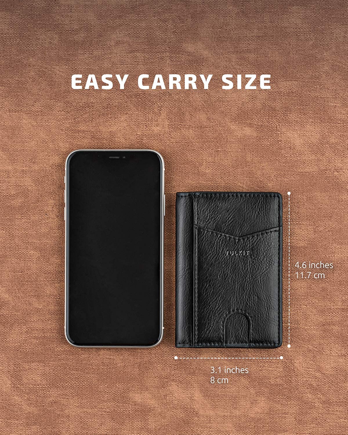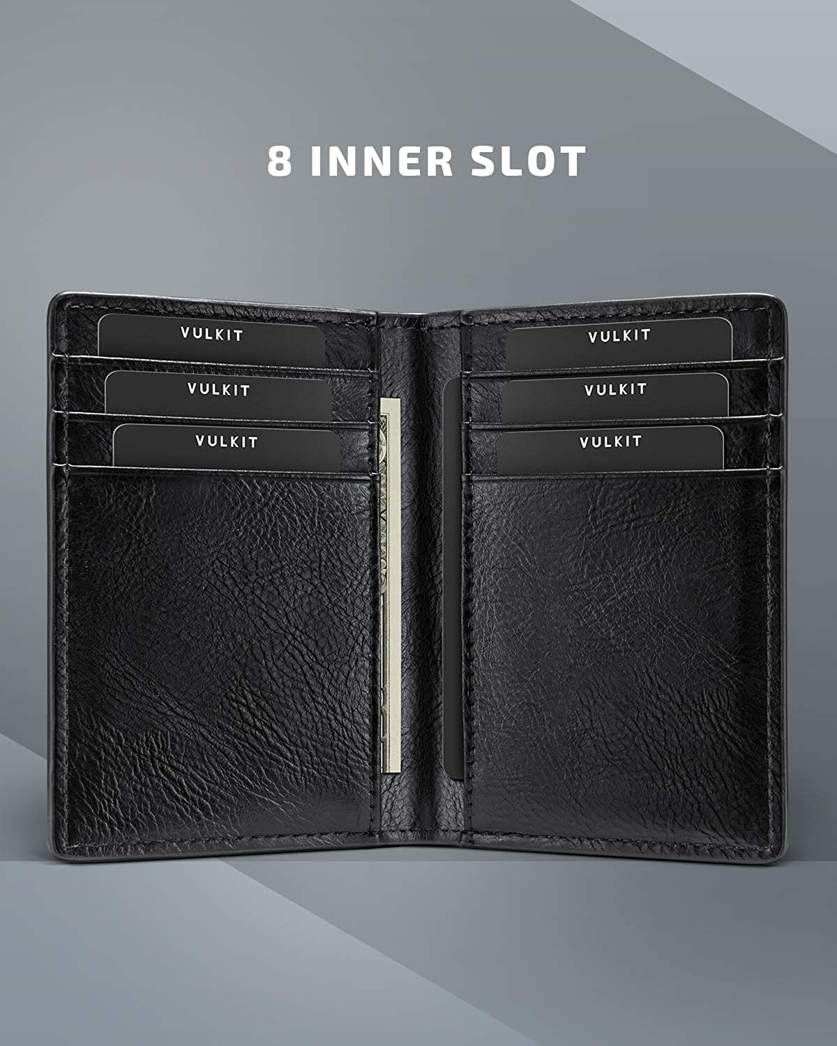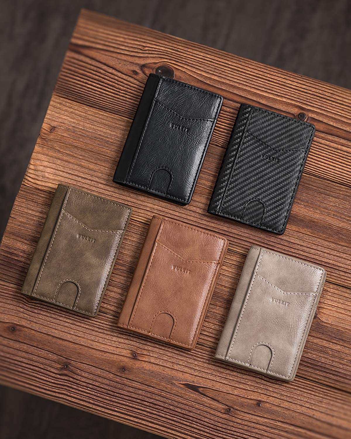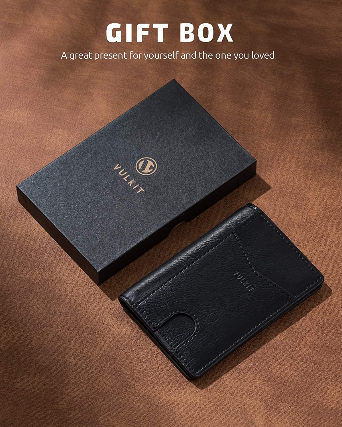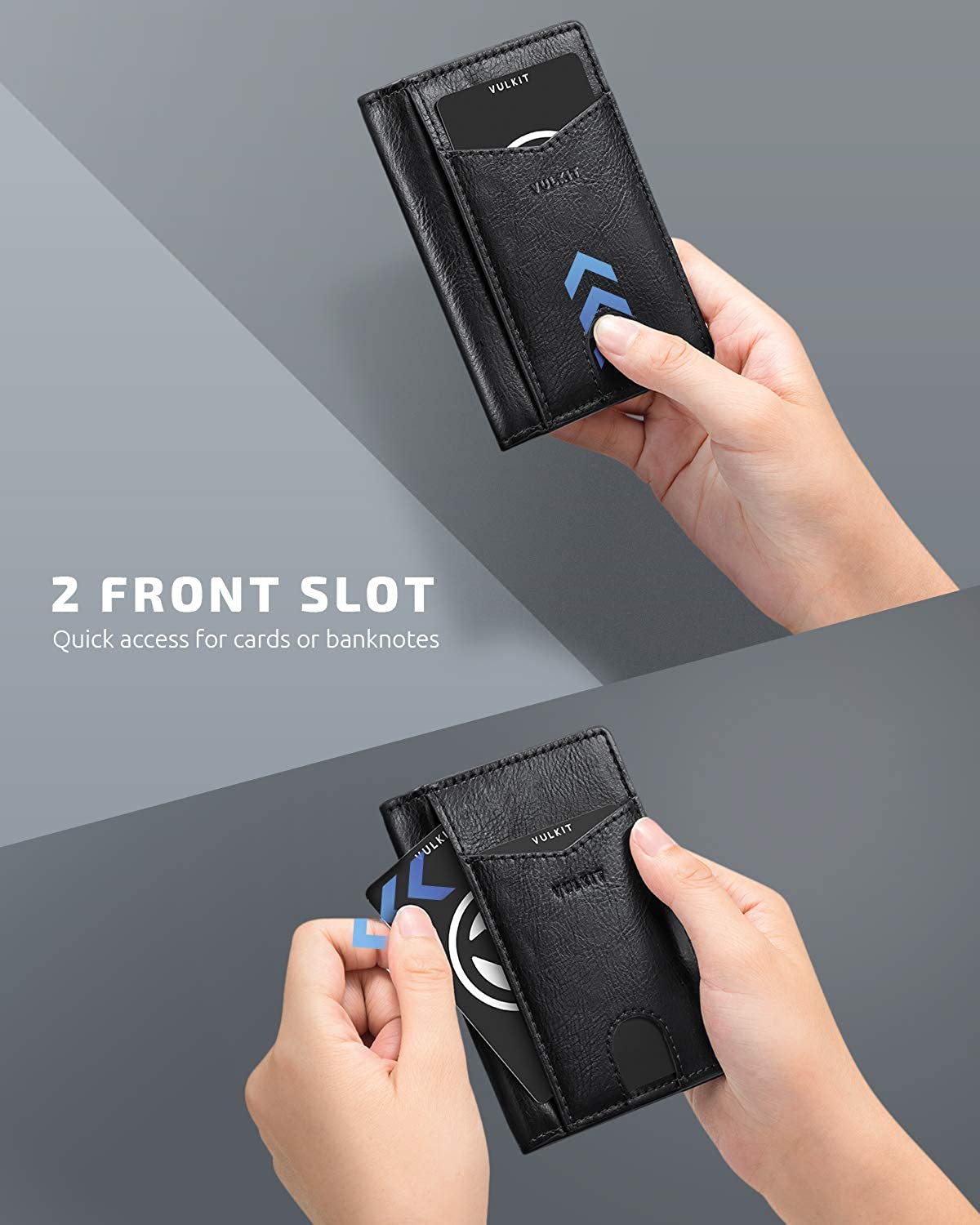 VULKIT Bifold Front Pocket Slim Wallet RFID Blocking Minimalist Thin Leather Credit Card Holder Wallet for Men and Women