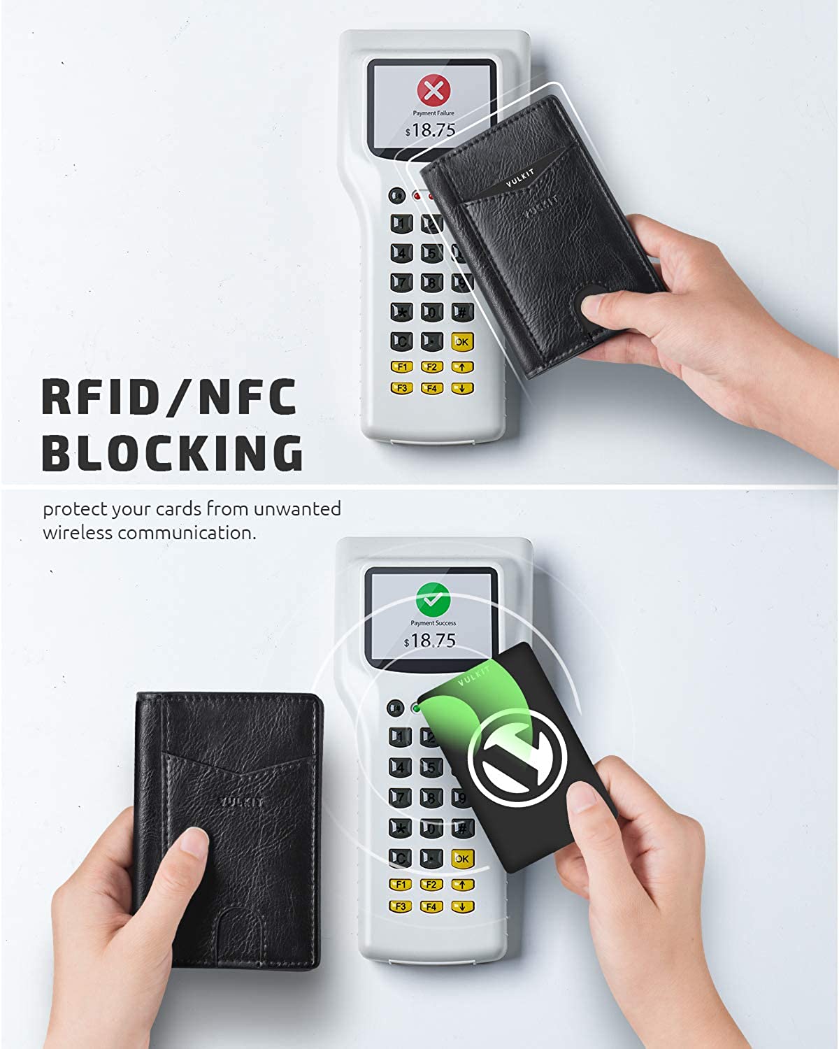 • SAFETY. PRIVACY. SECURITYOur minimalist wallets for men are equipped with advanced RFID Blocking Technology, a unique metal composite.Your credit cards, debit cards, driving license and ID cards will be protected effectively.