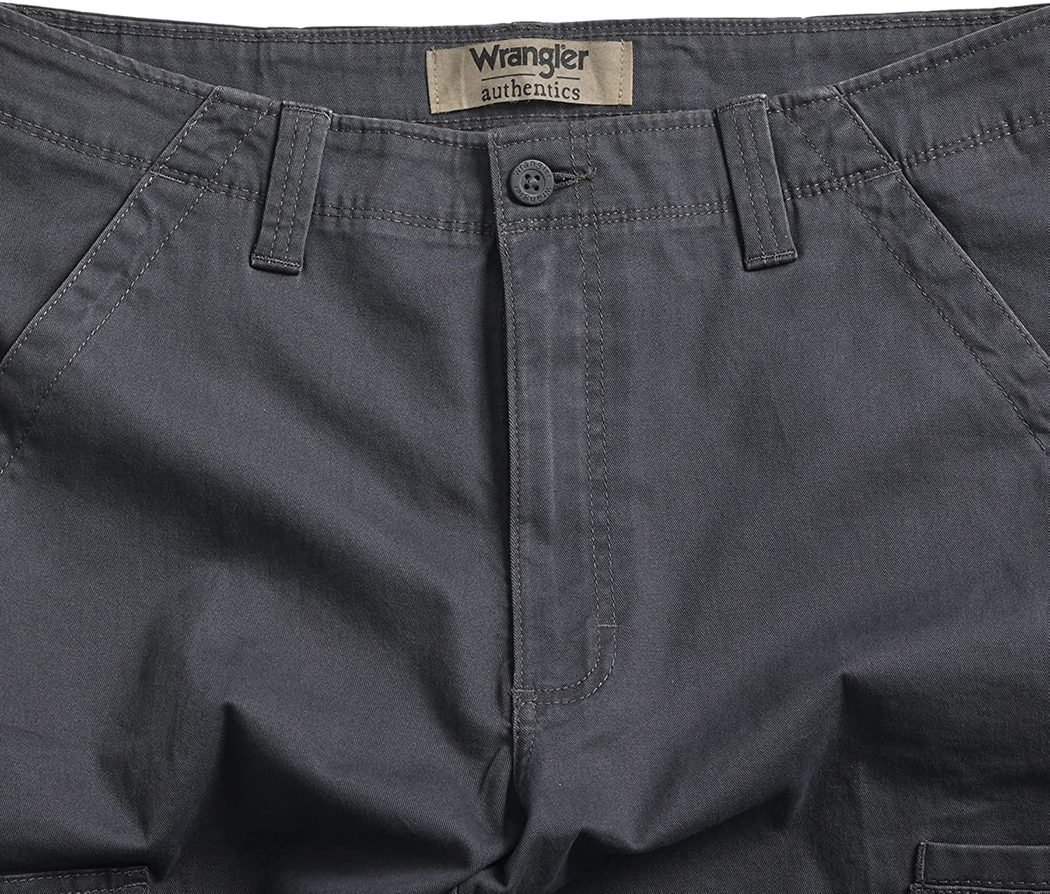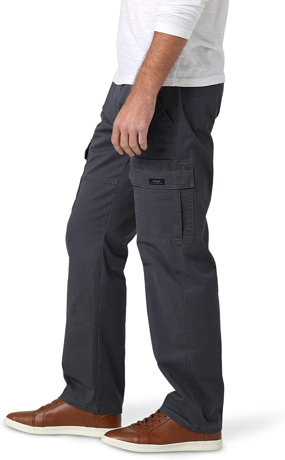 Wrangler Authentics Men's Classic Cargo Stretch Twill Pant. This classic cargo pant is constructed with durable materials built for long-lasting comfort. This cargo pant sits at the natural waist and features a relaxed fit through seat and thigh. Stretch fabric moves with your body, whether you're working in the yard or busy with the family on the weekend. (6) Pockets. (2) cargo side pockets (2) back patch pockets, and (2) slash pockets.