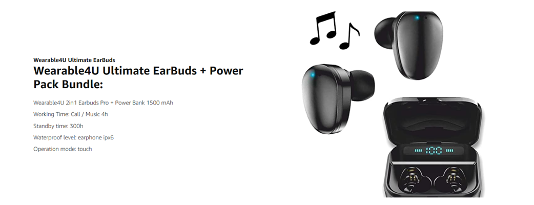 • WEARABLE4U ULTIMATE EARBUDS + POWER PACK: Wearable4U 2 in 1 EarBuds + Power Pack contains Wearable4U Power Case1500 mAh, Wearable4U Bluetooth EarBuds Pro. Keep your device charged at all times and enjoy your music during sports activities with our Wearable4U 2in1 Earbuds Pro!