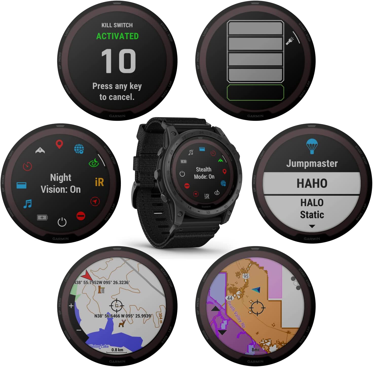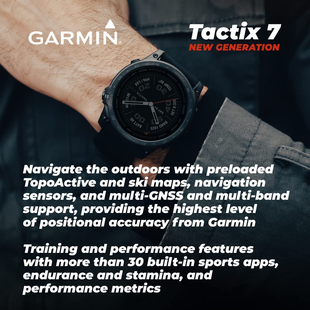 • EQUIPPPED TO EXECIUTE EVERY OBJECTION: Specialized tactical features include Jumpmaster mode, waypoint projection, stealth mode, dual-position format, preloaded tactical activity and a kill switch to erase user data and location. Navigate the outdoors with preloaded TopoActive and ski maps, navigation sensors, and multi-GNSS and multi-band support, providing the highest level of positional accuracy from Garmin