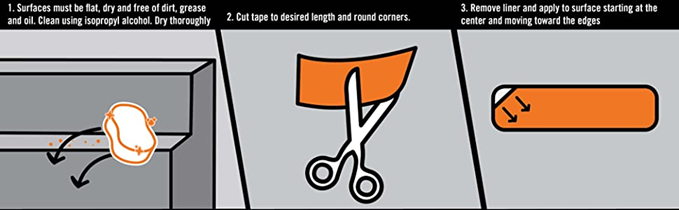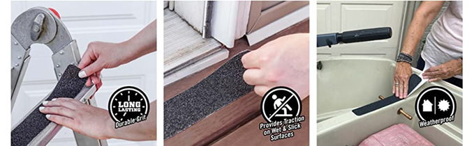 Gorilla Heavy Duty Tread Tape is designed to provide durable traction to wet, slick or high traffic areas. The multiple layers of protective coating ensure long lasting, durable grit that lasts both indoors and out. Gorilla Heavy Duty Tread Tape is perfect for ladders, steps, ramps, boats, RVs, decks, and more! DIRECTIONS: 1. Surfaces must be flat, dry and free of dirt, grease, and oil. Clean using isopropyl alcohol. Dry thoroughly. 2. Cut tape to desired length and round corners. 3. Remove liner and apply to surface starting at the center and moving toward the edges. IMPORTANT: Apply when temperature is above 39° F. In-use temperature range: -40° F to 220° F. Prime and seal all wood and concrete before use. Not recommended for areas with continuous water submersion such as pools, tubs, and spas. Avoid placing Tread Tape in grout lines, cracks or to bridge gaps. Warning. To help reduce the risk of slips, falls, and other serious or permanent injuries Gorilla Heavy Duty Tread Tape should be used only in accordance with its application directions. You are responsible for evaluating if Gorilla Heavy Duty Tread Tape is appropriate for your intended use and that it is being applied in accordance with its application directions. Gorilla Heavy Duty Tread Tape could become less effective or degrade over time. Gorilla Heavy Duty Tread Tape may be cleaned with a broom and appropriate, gentle cleanser as needed. Regularly inspect and maintain Gorilla Heavy Duty Tread Tape and replace as needed.