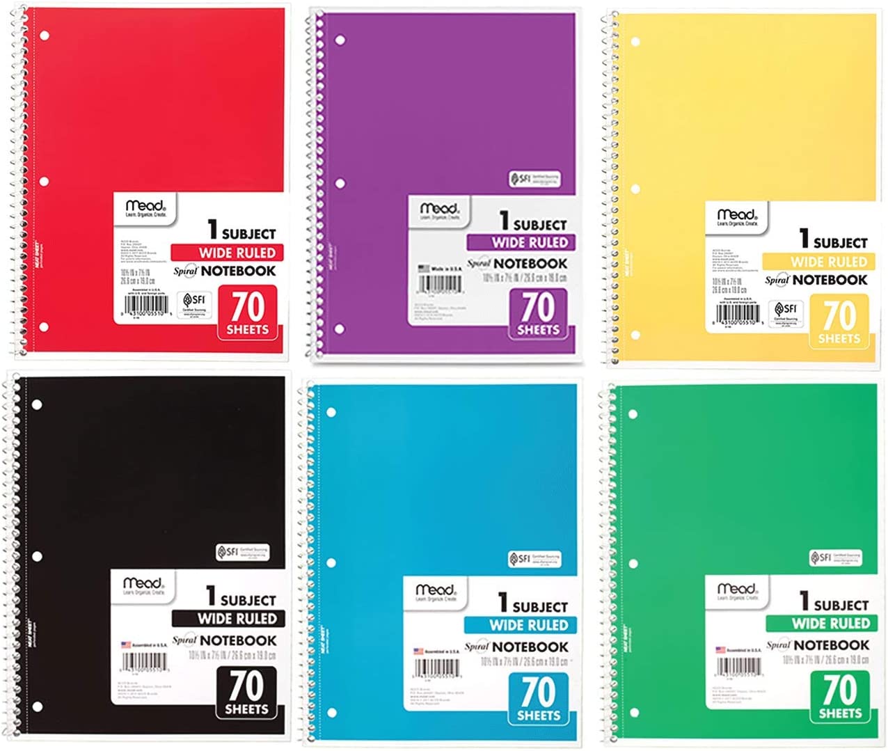 Each notebook contains 70 sheets of Wide Ruled paper perfect for a quarter, semester, or special project.