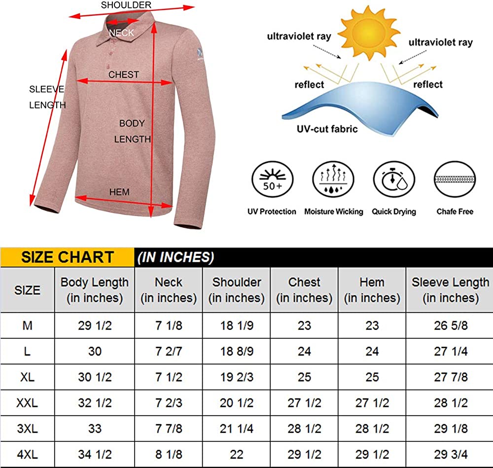 【Breathable Fabric】: This mens golf shirts made of 100% Polyester. Lightweight and quick-dry, providing superior comfort all day long, on and off the golf course.