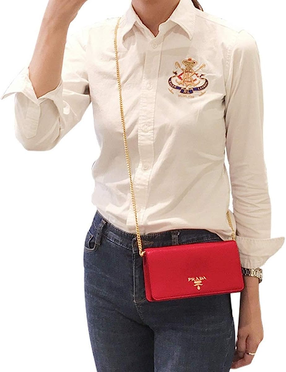 Elevate your look with this Prada Vitello Move chain wallet! This piece is crafted from Lacca red calfskin leather, featuring the iconic gold Prada logo on the front face.