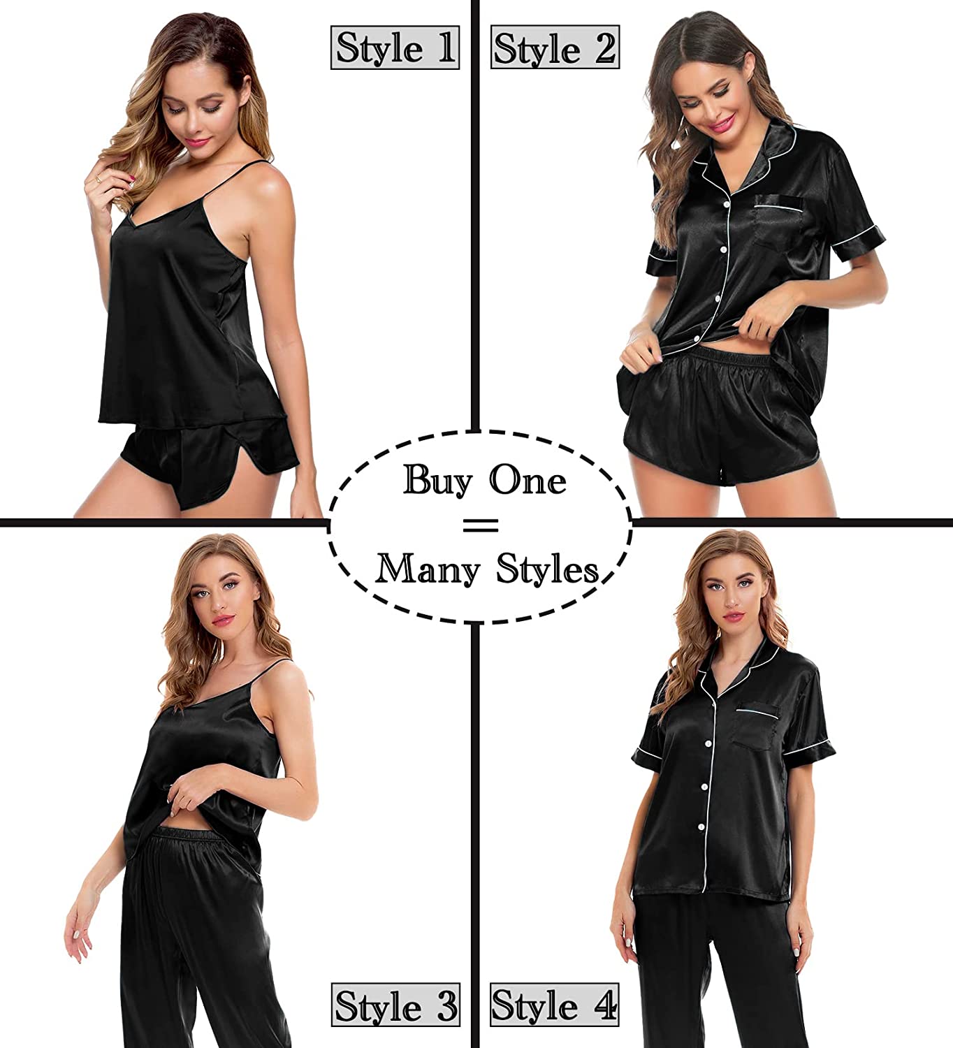 • 【Various Occasions】--- SWOMOG silk satin pajamas sets, the ultimate in comfort and luxury. Lightweight breathable,cool fabric make you comfortable and elegant, which is suitable for daily wearing, lounging and sleeping, pajama party, girls day, bridal sleepwear in living room, bedroom, hotel, vocation, travel. Great Choice For your wife, girlfriend, mother, sister, daughter and friends.