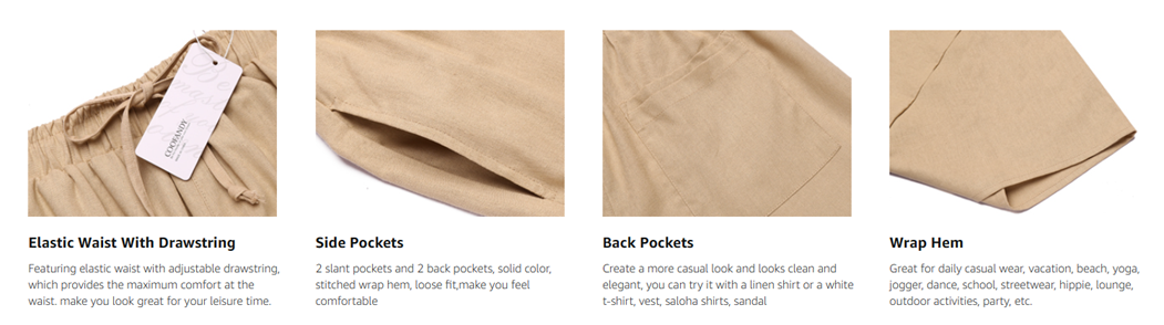 - Easy to Match: Create a more casual look and looks clean and elegant, you can try it with a linen shirt or a white t-shirt, vest, saloha shirts, sandal, canvas shoes, flip flops and so on. This harem pants are suitable for both men and women.