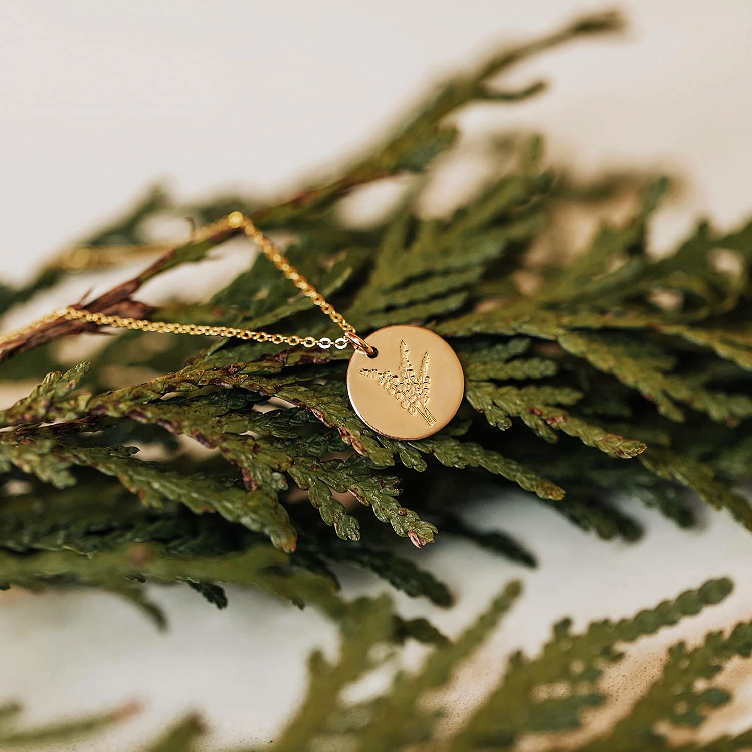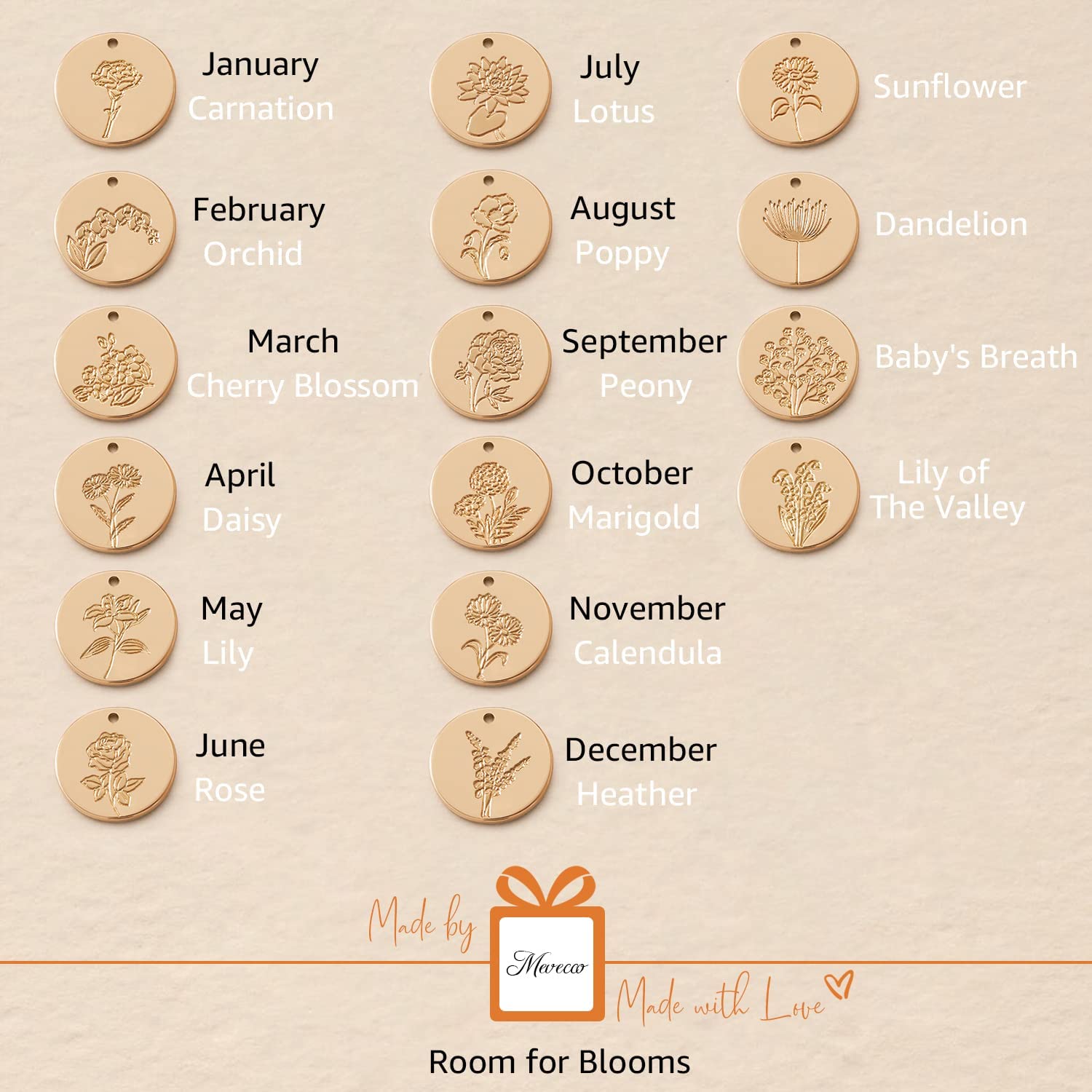 MEVECCO Birth Flower Necklace 18k Gold Engraved Custom Floral Pendant Necklaces Dainty Birth Month Flower Disc Charm Hand Stamped Flower Disk Necklace Personalized Jewelry Birthday Gift for Her