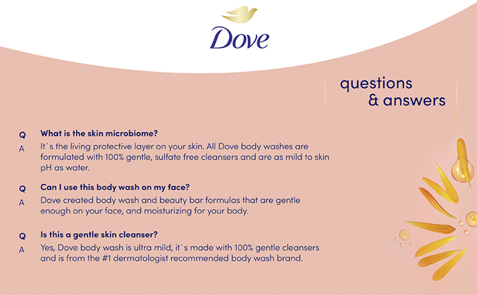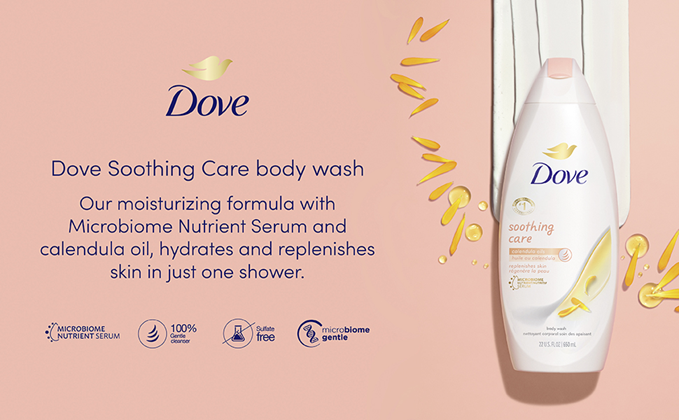If you have sensitive skin, you know that your skin requires a little extra care. But sometimes it is nice to have some enjoyment in the shower too. That’s why Dove’s Soothing Care body wash for sensitive skin is made with calendula-infused oils and a hypoallergenic fragrance to soothe your senses while still giving your skin the best care. Formulated with a creamy lather to hydrate and replenish your skin with 100% gentle cleansers. Proven on sensitive skin, you can feel confident that this sulfate free sensitive skin body wash is gentle on both your face and body and won't dry skin or clog pores. You'll get beautifully nourished while maintaining healthy skin. Dove body wash includes Moisture Renew Blend—a combination of skin-natural moisturizers and plant-based moisturizers that deliver a powerful mix of moisturizing ingredients for your skincare routine. At Dove, our vision is of a world where beauty is a source of confidence, and not anxiety. So, we are on a mission to help the next generation of women develop a positive relationship with the way they look-reaching over 1/4 of a billion young people with self-esteem education by 2030. We are committed to a landmark new initiative as part of our 2025 commitment to reduce plastic waste-reducing over 20,500 metric tons of virgin plastic annually by making the iconic beauty bar packaging plastic-free globally, launching new 100 percent recycled plastic bottles and trialing a new refillable deodorant format that radically reduces plastic use. As one of the largest beauty brands in the world, we are revealing an agenda-setting commitment to tackle the global beauty industry’s plastic waste issue. Try the whole range of Dove Soothing Care skincare and cleansing products including the beauty bar shower foam, body wash and body polish.