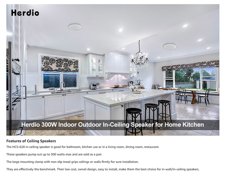 - Flush Mount Design - Wide sound dispersion designed speakers easily integrate with new and existing audio systems, traditional Passive speaker design, simply drive power from your home audio receiver or amp