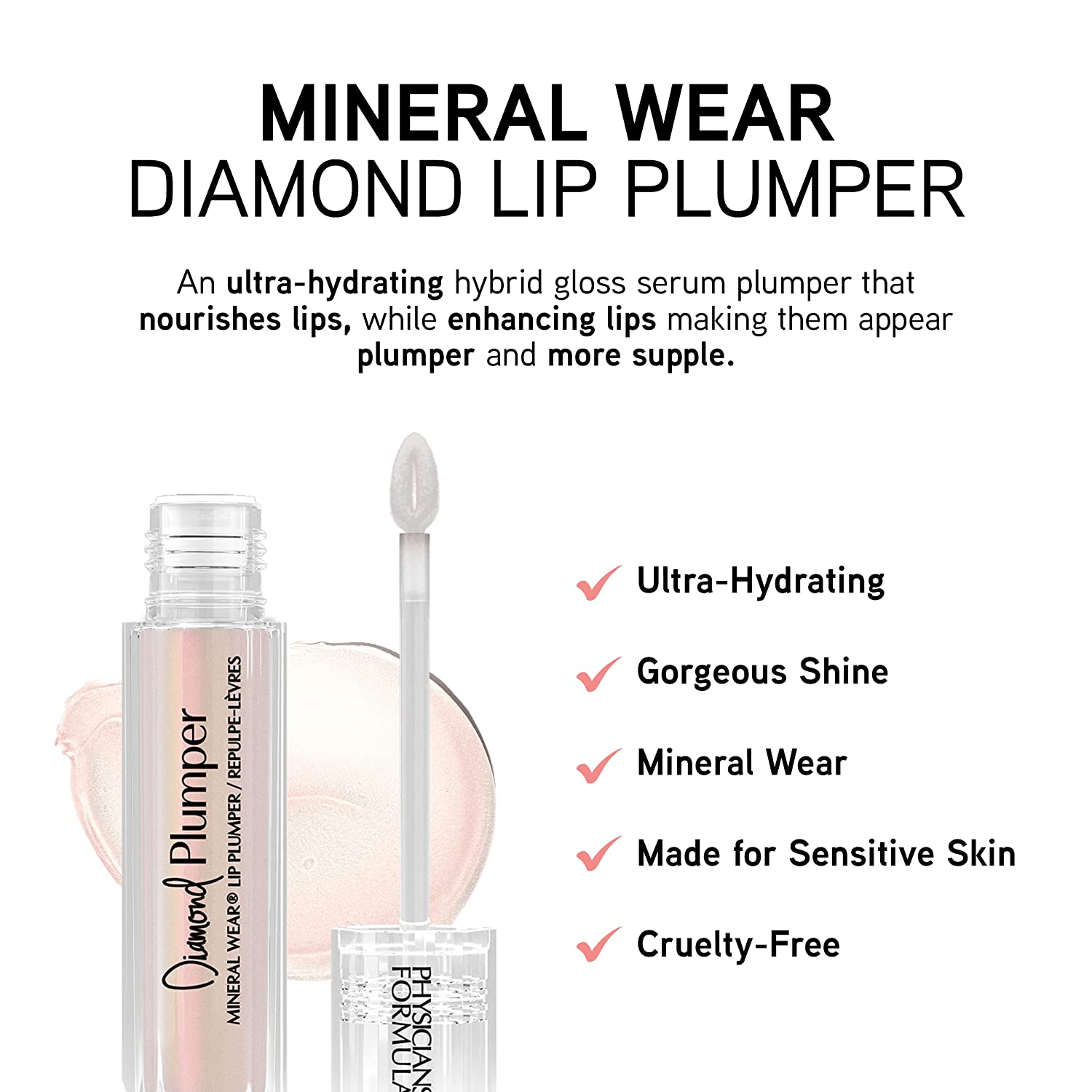 Physicians Formula Mineral Wear Diamond Lip Plumper Gloss, Dermatologist Tested, Light Pink Princess Cut