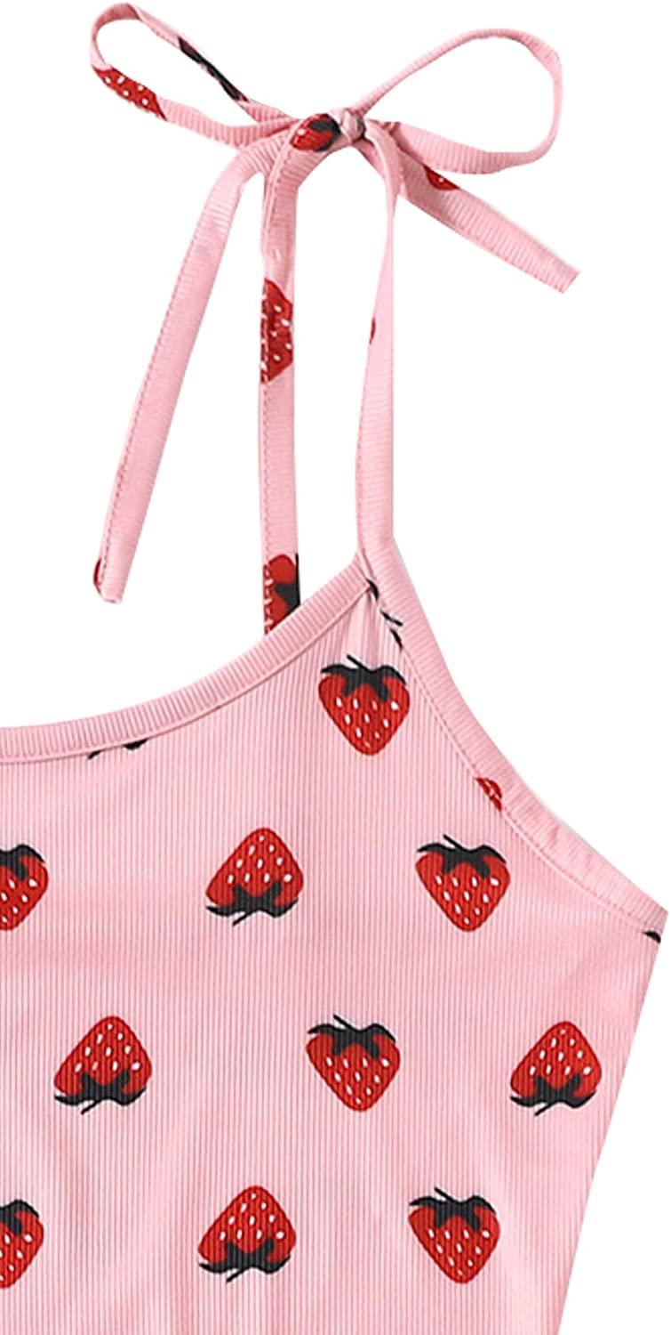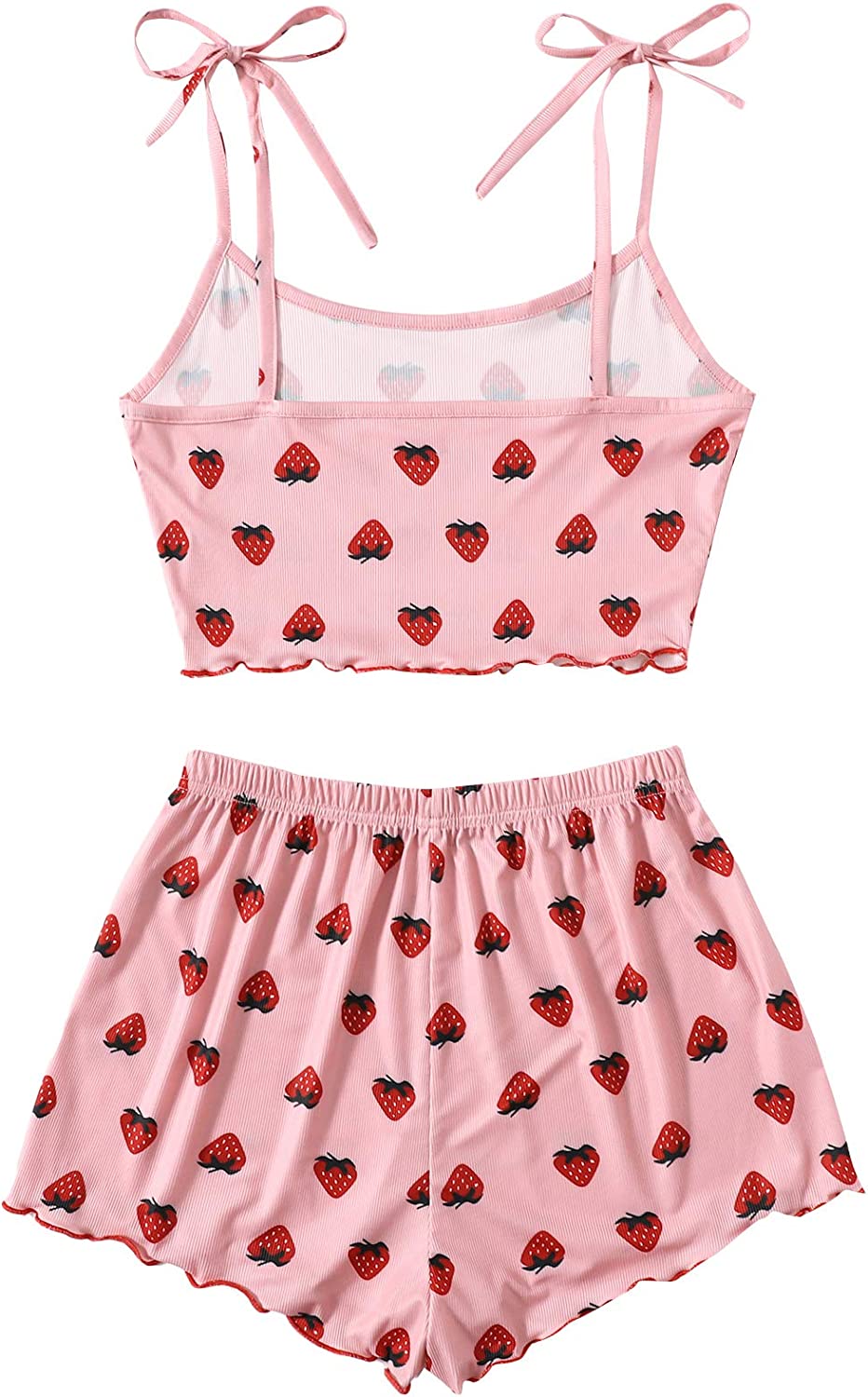 SweatyRocks Women's Summer Strawberry Print Cami Top and Shorts Sleepwear Pajamas Set