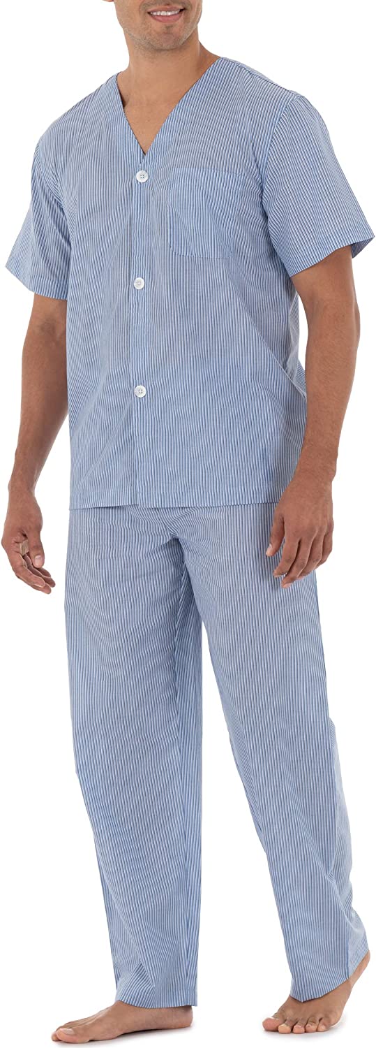 Fruit of the Loom Men's Broadcloth Short Sleeve Top and Long Pants Pajama Set