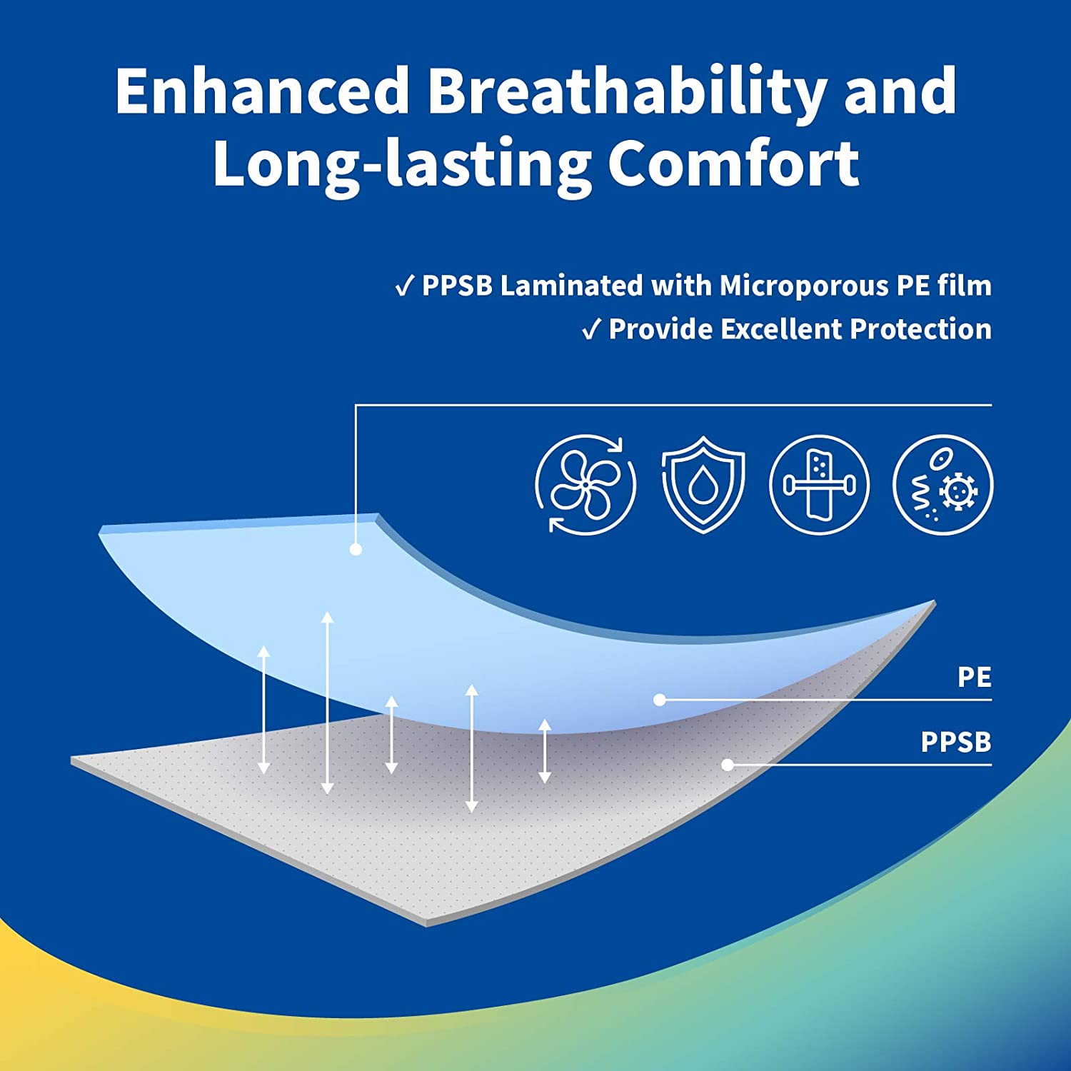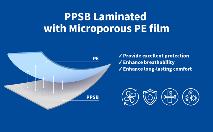 | Material | Spunbonded polypropylene laminated with PE film |