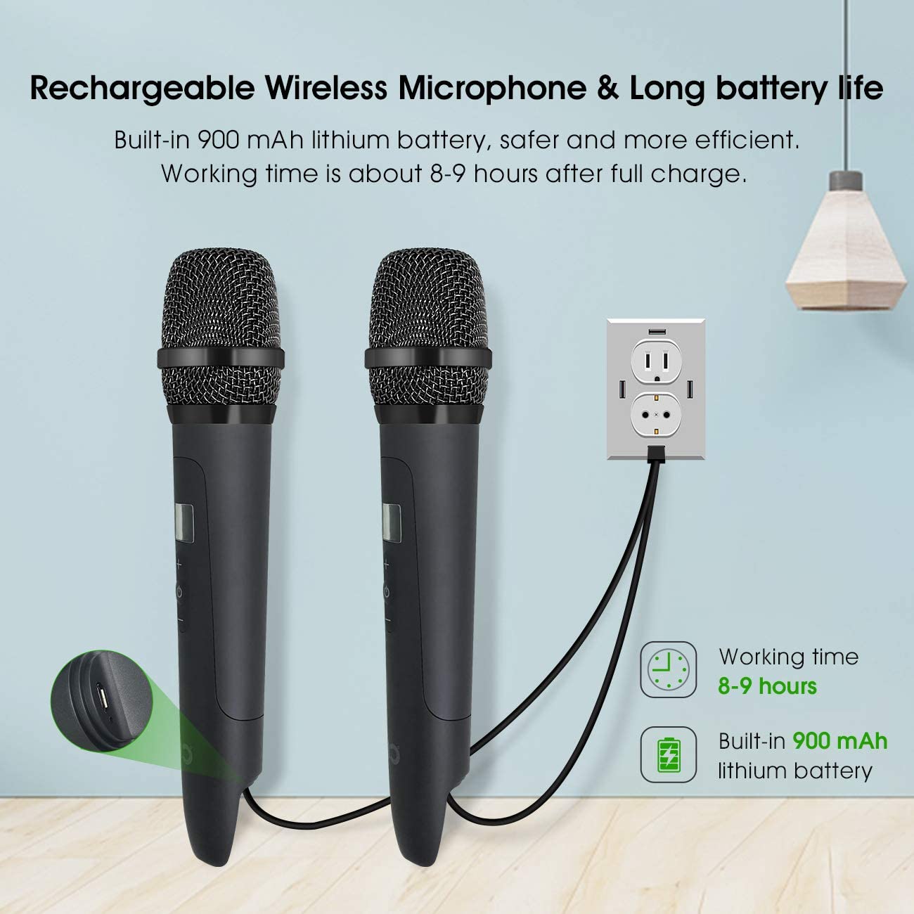✔ Rechargeable Microphone Battery: 900 mAh lithium battery