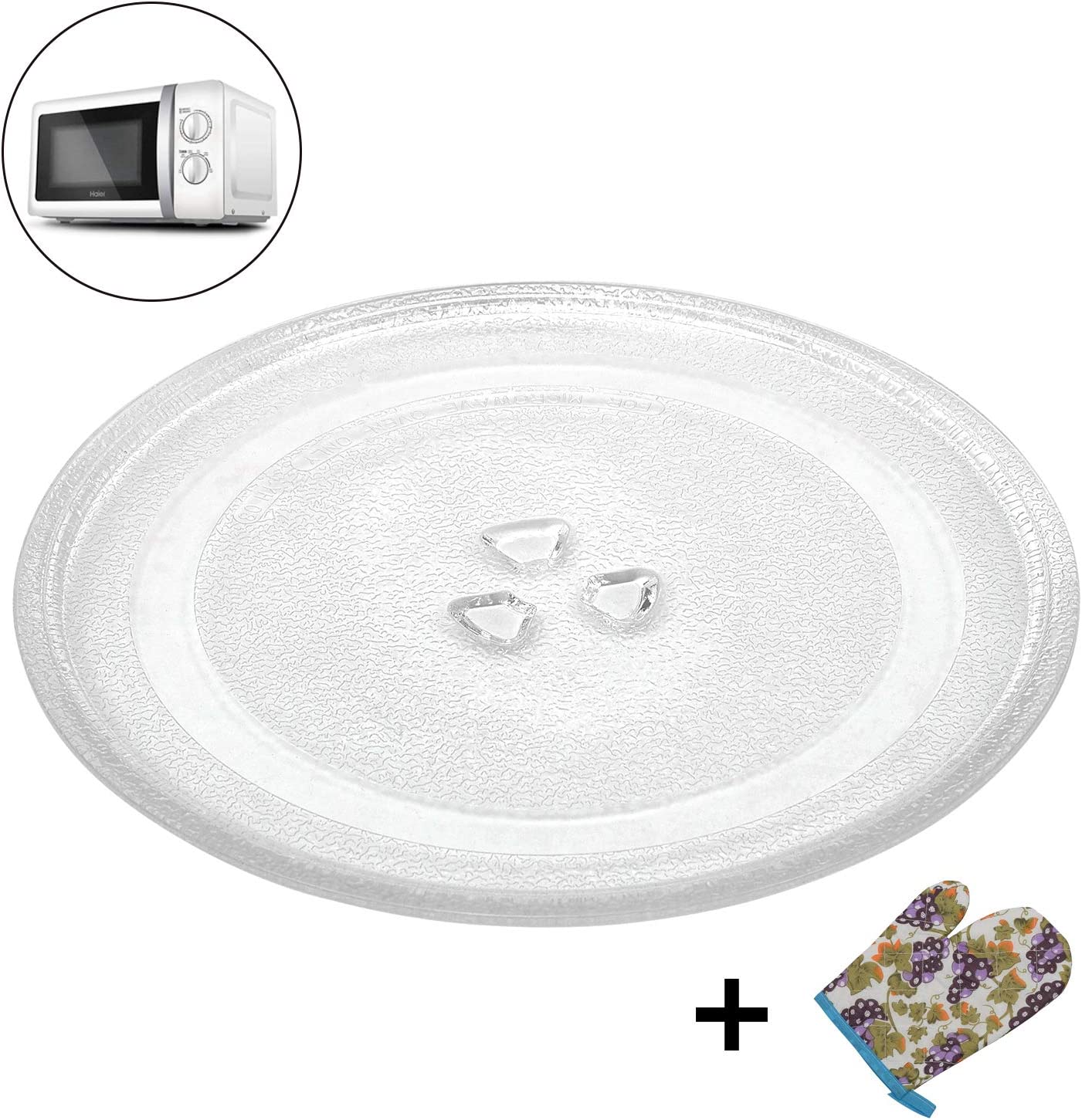 - ◈Sturdy and Security◈ This Glass Plate comes complete with 3 small pips & indentations on base to enable it to sit securely on the centre support. The round plate is sturdy and durable due to the high grade thick glass. With the middle frosted surface makes food hardly to pill out during heating up. And this hygienic and food-safe glass cooking tray have the resistance to heat and light impacts, is ideal for heating all types of food in your microwaves.