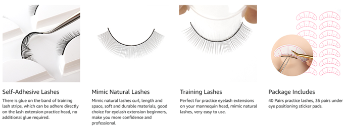 • [SELF-ADHESIVE] There is glue on the band of training lash strips, which can be adhere directly on the lash extension practice head, no additional glue required.