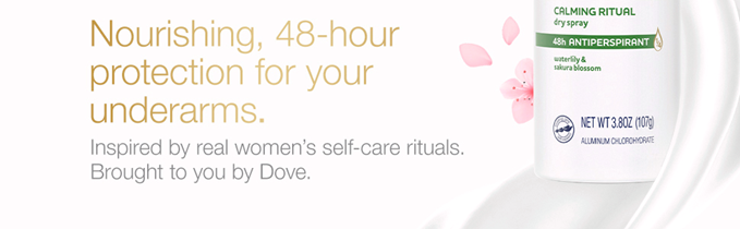 • 48H protection: Dove Nourishing Secrets dry Spray Antiperspirant Deodorant waterlily & Sakura blossom keeps your underarms dry for up to 48 hours while being luxuriously kind to your skin
